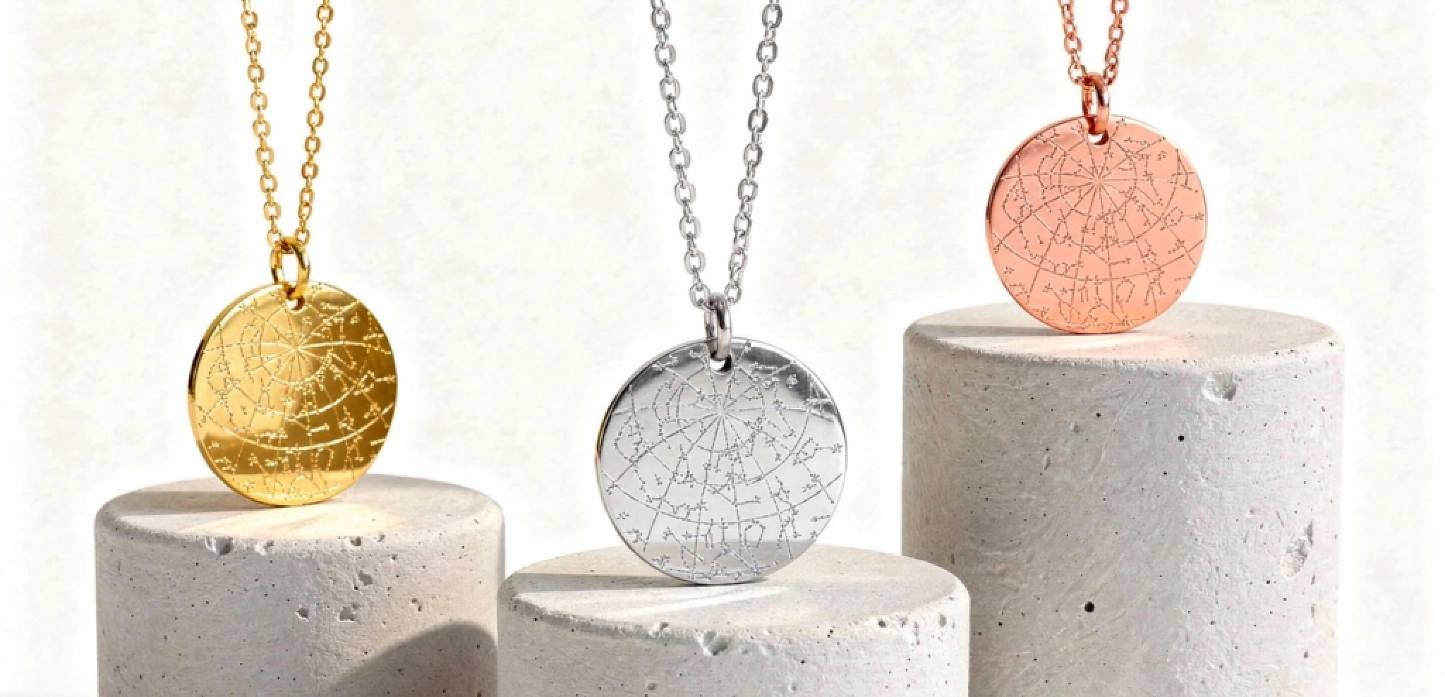 Every necklace is powered by a professional celestial engine using standardized star catalogs. Unlike generic illustrations, our system calculates the exact alignment of stars and planets based on your date and location, resulting in a mathematically faithful record of the sky from your unique perspective on Earth.